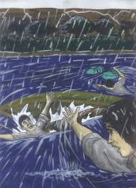 de navidad, a la deriva en el Golfo de Morrosquillo, con sus primos Michel y